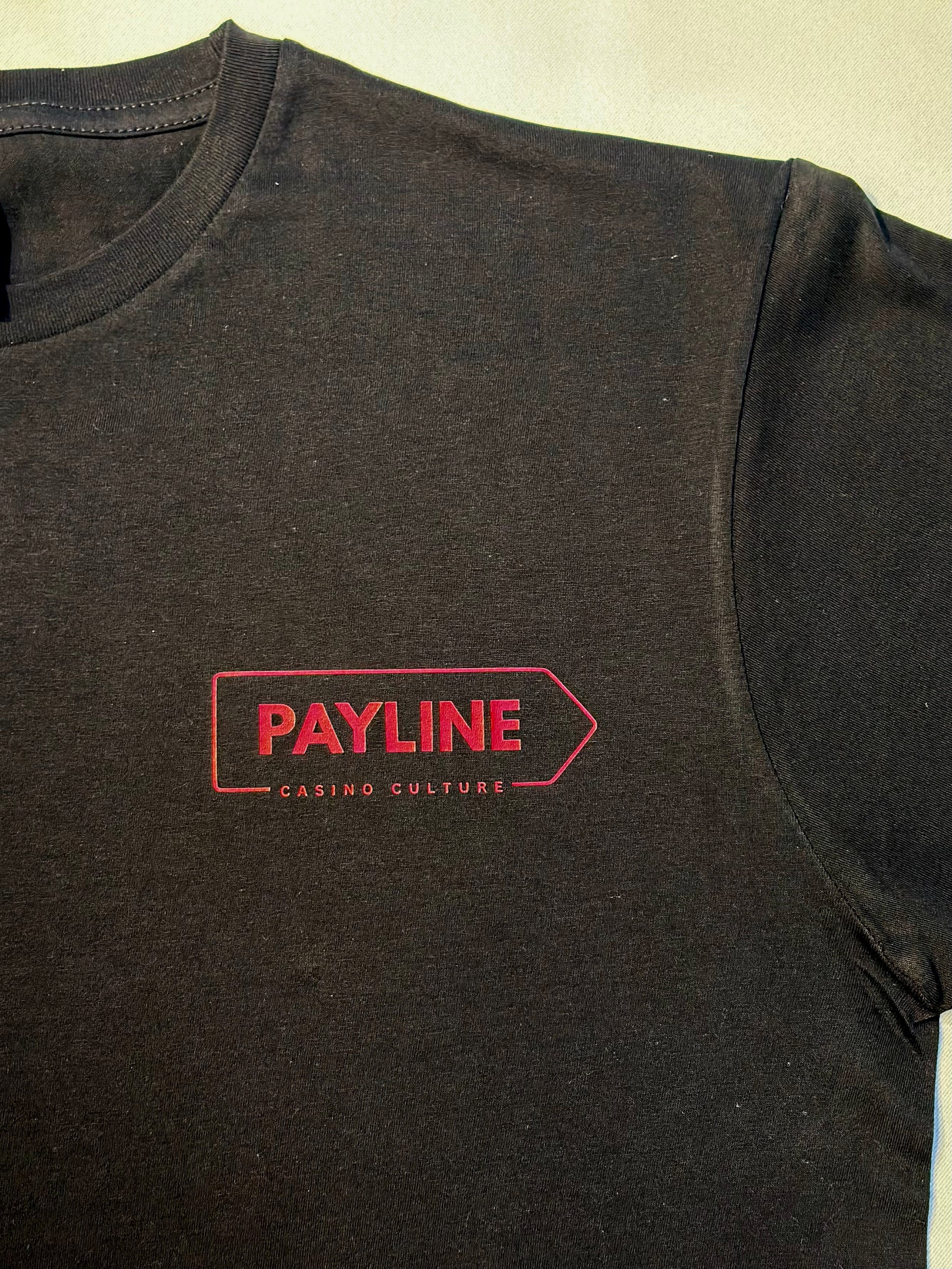 This bold black tee features Ferrari red Chinese lettering and a gold coin graphic