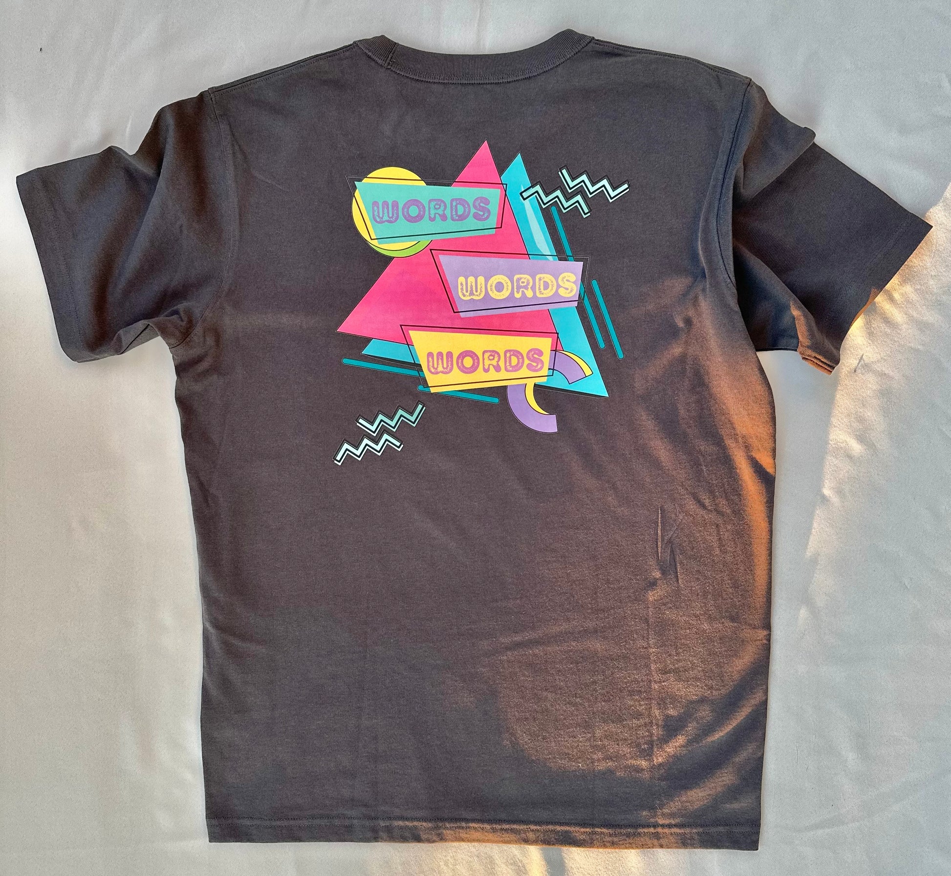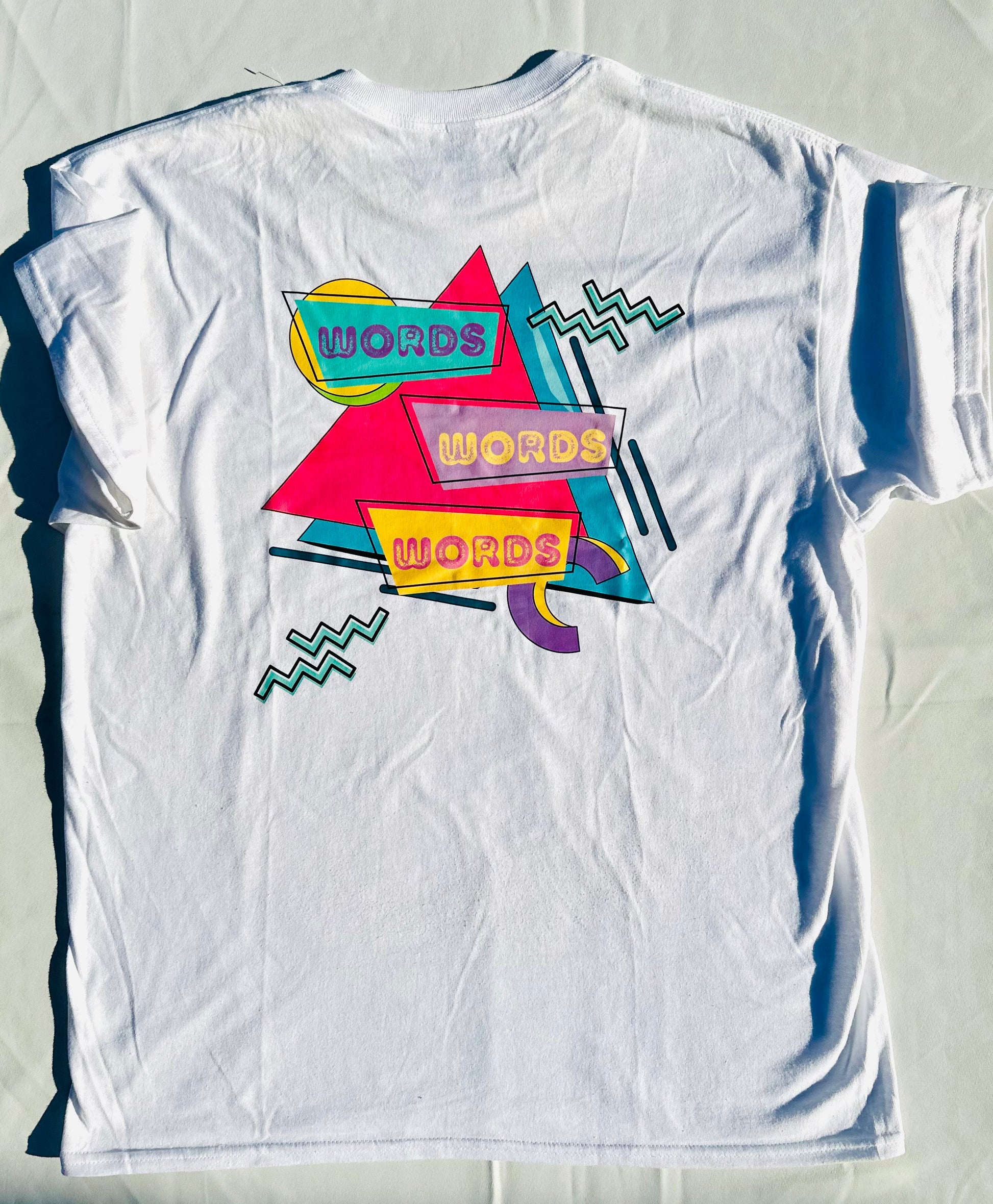 Throwin’ it back with bold ‘90s vibes and a message that hits Jackpots. Clean white tee, vintage style lettering ‘Words Words Words’